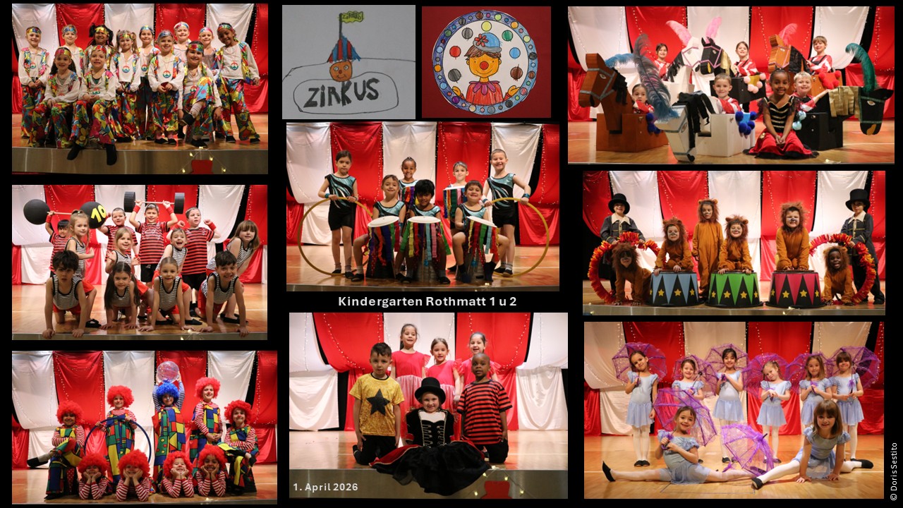 Am 1. April fand im Breitensaal die lang ersehnte Zirkusvorstellung der beiden Kindergärten Rothmatt 1 und 2 statt. Bereits seit Januar begleitete das Thema «Zirkus» die rund 40 Kinder. Sie lernten die verschiedenen Akteure und Tiere des Zirkus kennen, haben viel gemalt und gebastelt und natürlich auch intensiv für die Vorstellung geübt.